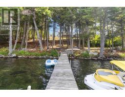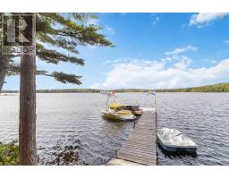 Welcome to your year-round lakeside retreat in the prestigious Homestead Estates of Italy Cross; a coveted South Shore neighbourhood where waterfront luxury meets lifestyle! This beautifully maintained executive bungalow isn't just a home - it's a whole experience impeccably designed for families who want room to grow, relax, and create memories across generations. Step into the sun-soaked, open-concept main floor where a designer kitchen with oversized island flows effortlessly into a spacious dining area and cozy living room, all framed by lake views and a Pacific Energy wood stove. Slide open the doors to your brand-new wraparound deck - the ultimate spot for lakeside morning coffees or evening wine with friends! A dreamy primary suite with walk-in closet, ensuite and lake views for days makes for a private space you'll never want to leave. An additional full bath and 2 more spacious bedrooms (or bed and an office) on the main level ensures you've got comfort and function covered. But the real showstopper? The perfectly thought out in-law suite downstairs! Featuring 2 bedrooms, it's own full kitchen, bath, separate entrance, and private parking. It's the perfect setup for grandparents, grown kids or visiting guests. Outside, it just keeps getting better: 275 feet of pristine shoreline, a sandy beach area for little swimmers, deep-water dock for boating adventures, and even a rustic-chic bunk or boathouse for summer sleepovers or extra storage. All of this surrounded by lush landscaping, stone retaining walls, and a brand-new metal roof with solar panels for added efficiency.With a detached deluxe double garage for your vehicles and projects and updated finishes throughout, this is the forever home for your family that you've been waiting for! (id:38197)