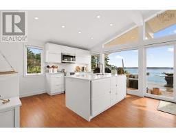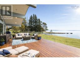 This beautiful one-level oceanfront home offers stunning southwesterly views over the sparkling waters of Mahone Bay, where you can take in breathtaking sunsets from the comfort of your own property. Situated on two parcels totalling just over an acre, the property features 139 feet of ocean frontage and a spacious, beautifully landscaped yard-perfect for relaxing, entertaining, or simply enjoying the natural coastal setting. The thoughtfully designed and recently renovated two-bedroom home blends comfort and quality throughout. The gorgeous Hanrahan kitchen features solid surface Silkstone countertops, a Bosch induction oven, a full-size fridge and freezer, and generous storage space-ideal for both everyday living and hosting. Hardwood floors run throughout the kitchen and living room, where a Morso Danish-style high-efficiency wood stove creates a warm and inviting atmosphere on cooler days. Hunter Douglas motorized blinds and expansive windows frame the ever-changing ocean views, bringing the outdoors in. The primary bedroom offers a convenient two-piece ensuite, while the second bedroom is perfectly suited for guests, complete with a Hanrahan Murphy bed and built-in storage. The exterior is finished with classic wood shingles and a durable metal roof (2021). Step outside to the impressive 16 x 39 deck with seamless glass railings-an ideal vantage point for morning coffee, evening sunsets, and everything in between. An attached 28 x 12 garage adds everyday convenience. A substantial 190 ft wharf, complete with a 24 ft ramp and 16 x 8 float, sits directly in front of the property, making it easy to enjoy some of the best boating and coastal exploring the South Shore has to offer. Located in a quiet and peaceful neighbourhood, this exceptional property offers the perfect balance of privacy and accessibility-just minutes from Chester, Mahone Bay, and Lunenburg, and less than an hour from Halifax. (id:38197)