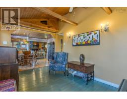 Set back from the road on a private driveway, this two-bedroom, one-bath home offers comfort, functionality, and stunning ocean views and comes with one PID and 3/4 acre of land. The open-concept kitchen and dining rooms, and living space featuring vaulted ceilings, exposed wood beams, and a cozy wood stovecreating a bright and inviting space. The spacious primary bedroom boasts extra-high ceilings, while an additional living area with patio doors leads to the private backyard. The property includes fruit trees, gardens, a fire pit, and multiple outbuildings such as a greenhouse and two shedsideal for storage, hobbies, or gardening. With both front and back decks, this home offers multiple outdoor spaces to enjoy the ocean views and surrounding landscape. A unique property combining privacy, charm, and coastal living. Just minutes from The Deck restaurant, the amenities of Hubbards and Chester, and some of Nova Scotias most stunning beaches. (id:38197)