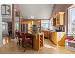 SALTWATER NATURE LOVER'S PARADISE. Commanding, unobstructed elevated views overlooking Pirate's Cove to the waters of Mahone Bay, 2.49 acres of rolling lawns, 444' of saltwater frontage, underground services and state of the art, energy efficient geo-thermal in-floor heating on all three levels of this custom built home are a few of the features one will discover. Enjoy paddle boarding, kayaking or add a mooring out in deeper waters for one's sailboat. This peaceful saltwater country setting has so much to offer - views of the Bluenose when she sails by, lots of birdlife including eagles, osprey, herons, playful otters... For the nature lover, 2.49 acres offers the opportunity for a hobby farm. Two ultimate chicken coops are already in place, two fire pit areas, fenced veggie garden, a sunset deck to relax after a busy day and a morning veranda to enjoy coffee and spectacular sunrises. Custom details include gorgeous, solid bird's eye maple cabinetry, gourmet kitchen with island, new induction stovetop, stainless appliances, pantry, solid hardwood floors, custom staircase with stair tread lighting, and beautiful, curved "wave" banister leading to an upper level music family room open to the main floor great room. The dining room, ideal for entertaining, could easily accommodate a harvest table for 12. The great room has a 21' soaring ceiling and custom floor to ceiling fireplace focal point, created with hand chiseled granite cobblestones from the 1800's. The same cobblestones used for the exterior chimney. There is a main floor primary suite plus guest bedroom or office. A third bedroom and bath complete the second level. 2700 sq. ft of living space, lots of natural light and views, plus another 2000 sq. ft in the basement to customize. There is an attached double garage with lots of room to store water and road toys, and a paved driveway. Enjoy all the area has to offer by land and sea. Located convenient to Chester and Mahone Bay. Less than an hour from Halifax. (id:38197)